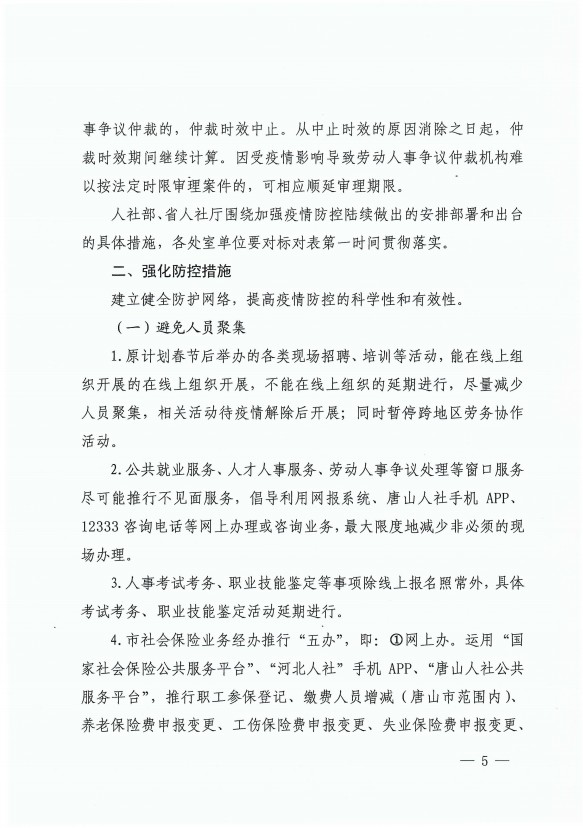 唐山市人社局关于印发《强化新型冠状病毒感染的肺炎疫情防控的工作方案》的通知